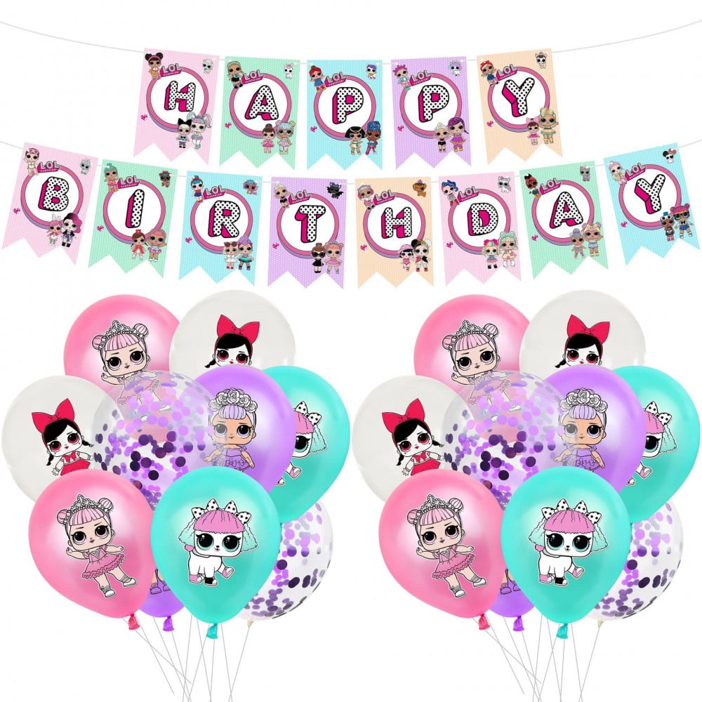 ديكور حفلات لول مكون من 34 قطعة مثالي لإضفاء جو من البهجة والأناقة على مناسباتك الخاصة. يشمل ديكور جداري، 20 بالونات اعياد الميلاد لاتيكس، و13 قطعة لتزيين الكعك، مما يجعل حفلتك متكاملة ومميزة بسهولة وسرعة.