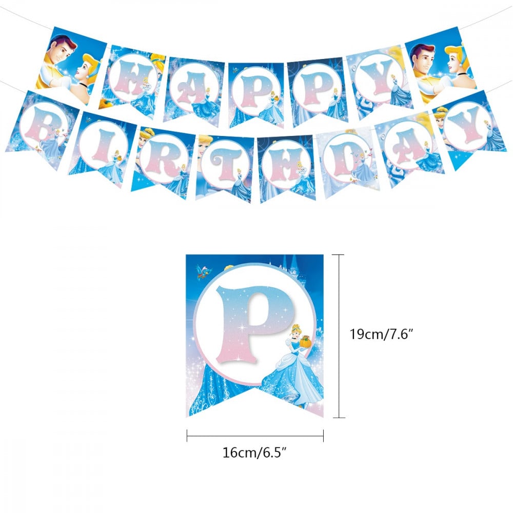 - ديكور جداري مميز يحمل عبارة "Happy Birthday" مع تصميم سندريلا