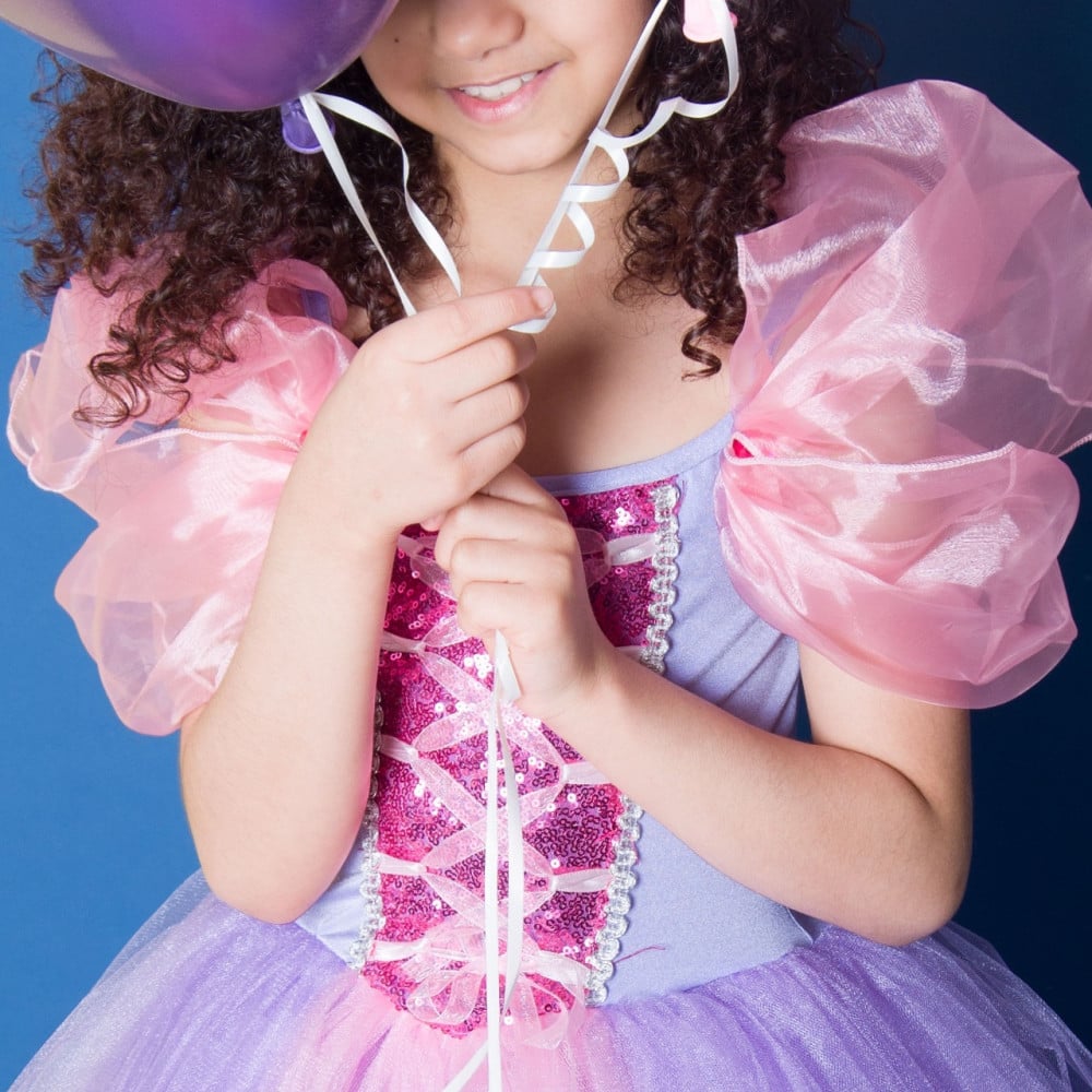فستان بنفسجي للاطفال يتميز بتصميم أنيق وألوان جذابة مستوحاة من شخصية ريبانزل، مصنوع من خامات ناعمة توفر راحة مثالية، مناسب للمناسبات والحفلات، ومتوفّر بمقاسات تناسب مختلف الأعمار.