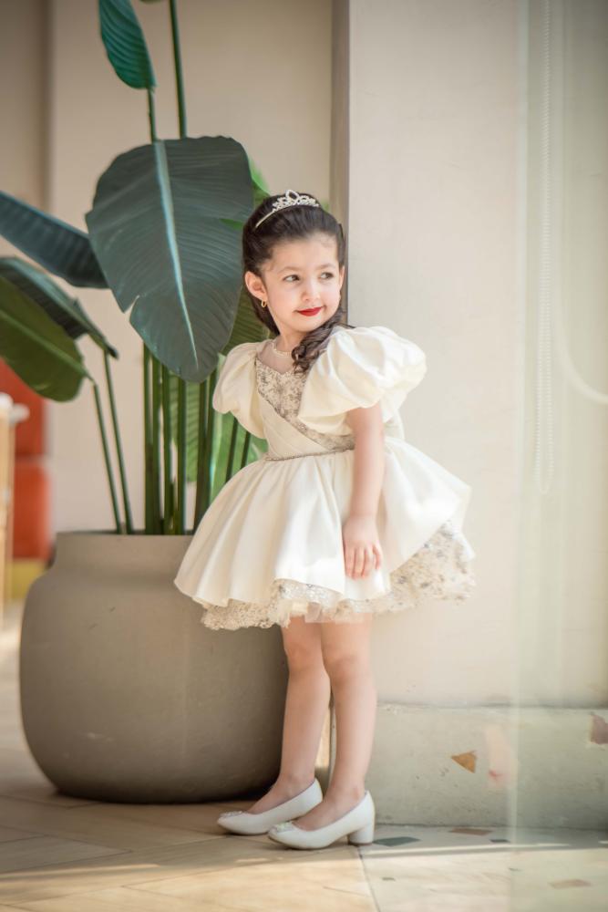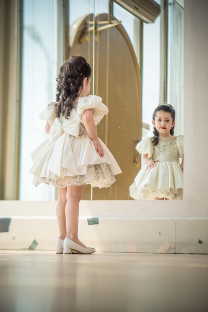 فستان سهرة بناتي باللون السكري