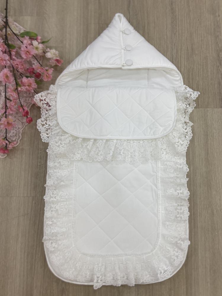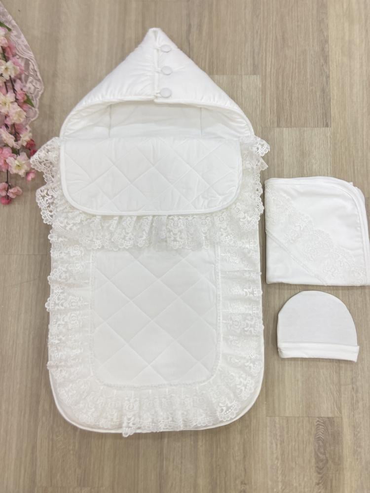 محمل مواليد ابيض دانتيل مع لفة وقبعة