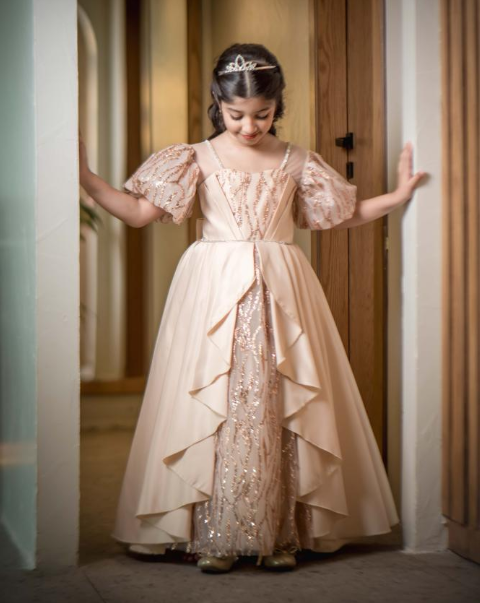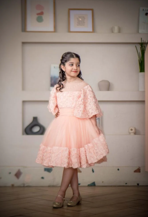 - يُعدّ هذا الفستان من أشهر التصاميم لدى lafleurparty، فهو يجمع بين اللون الوردي الحالِم، التول المنفوش، وتطريز الورود الدقيق. مثالي لحفلات أعياد الميلاد أو مناسبات العائلة، حيث يمنح الطفلة إطلالة أميرية رومانسية دون المبالغة.